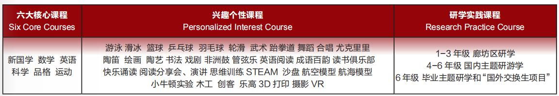 小学阶段以实践性学习为主,着重形成学生良好的道德行为习惯和学习习惯,注重学生兴趣激发,呵护学生的好奇心和求知欲。根植于中国优秀传统文化,借鉴融合世界教育之优。提供丰富和充满自我挑战的小学全人课程,帮助孩子在自我管理、终身学习、团队精神等方面得到长足发展,成为爱阅读,爱运动,文明自信,兴趣广泛,自立利人的主动学习者。