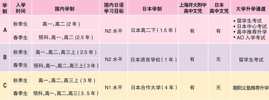 上海朝阳义塾国际高中中日国际班教育教学日语课程:培养学生留学所需的日语能力日本留考(EJU)课程:培养学生升学所需的综合能力特色课程:培养学生的独立生活能力