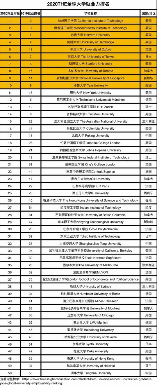 前不久,泰晤士高等教育THE发布了《2020年全球大学毕业生就业能力排行榜》——榜单综合了22个国家、6000余院校/机构的108225张选票,最终选出前250所大学排名。