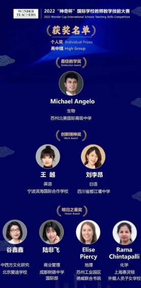 美中国际教育集团国际教育中心Damian、曾贤璐、魏丹琪、刘微、吴梦媛、汤智波、郑媛媛等14位老师报名参加。其中,徐一文、上官振东等5位老师获得全国优秀奖,刘李昂老师荣获全国银奖,美中国际教育集团荣获教学团队奖。