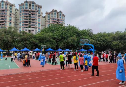 4月23日,中黄外国语小学作为白云区内幼儿、小学复课阶段的核酸检测场地,为加拿达幼儿园、格林童话幼儿园、广钢南湖幼儿园、山水庭院幼儿园、中黄外国语小学及周边小区其他学校学生共计上万人提供了核酸检测服务,为同学们周一的返校复课做好准备。