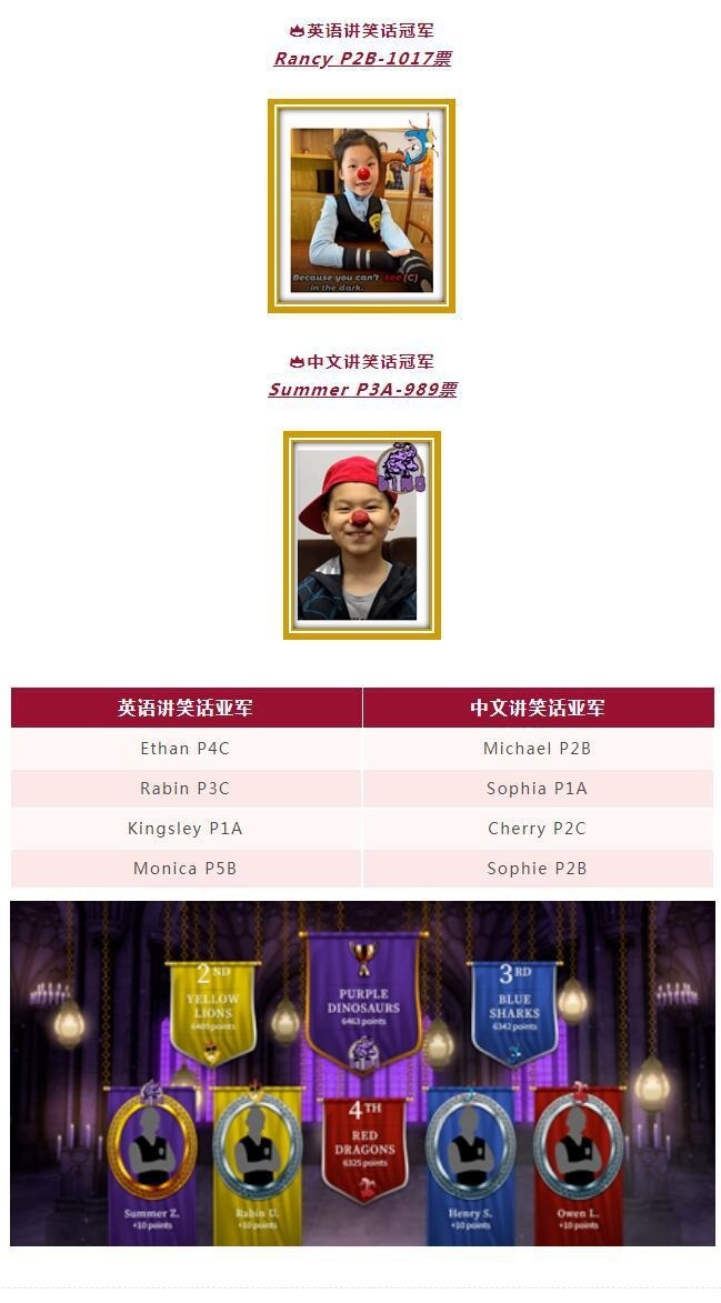 前5名中英文笑话,是由院舍和关怀辅导委员会从投票平台选出的,有数千人投给了他们最喜爱的笑话,非常感谢每一位在朋友圈转发的比赛信息。投票截止至上周五,现在我们可以来展示BMH届红鼻子节的讲笑话比赛冠军!