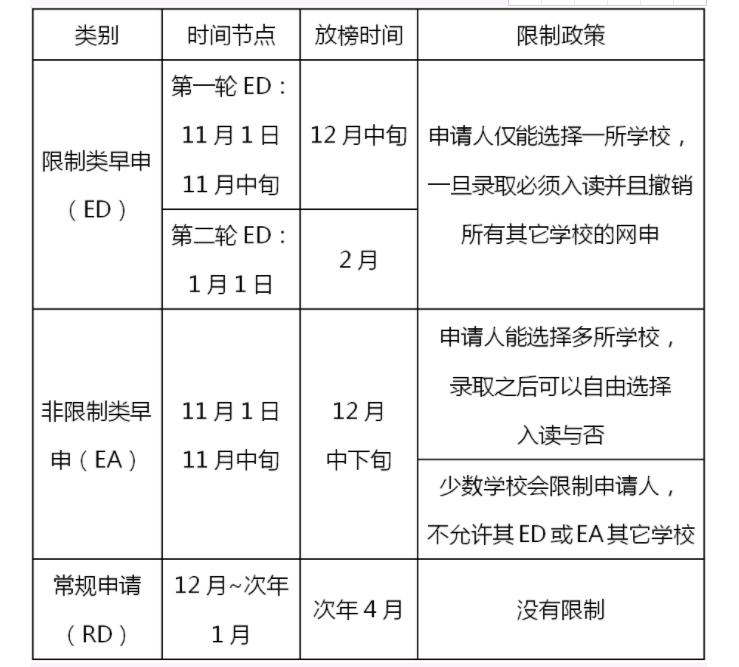 1. 美本申请类别和关键时间节点有哪些?