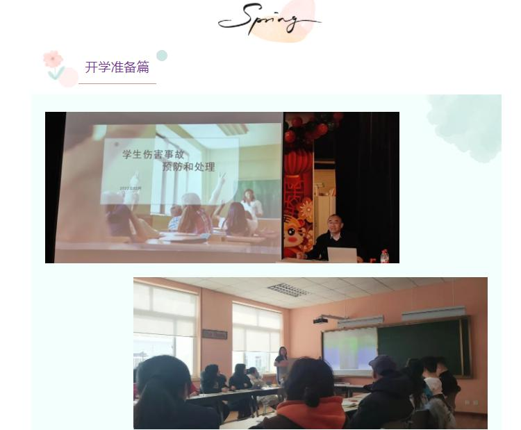 全体教师参加学生伤害事故预防和处理的培训。讲课的老师旁征博引,听课的老师聚精会神,加深了对相关问题的理解,更好地为同学们学习和生活保驾护航。吴校长和教学处李华主任在教师工作会议上对新学期工作提出希望,做出部署。各教研组老师分组召开会议,确定新学期工作。为了孩子们的未来,老师们全力以赴。