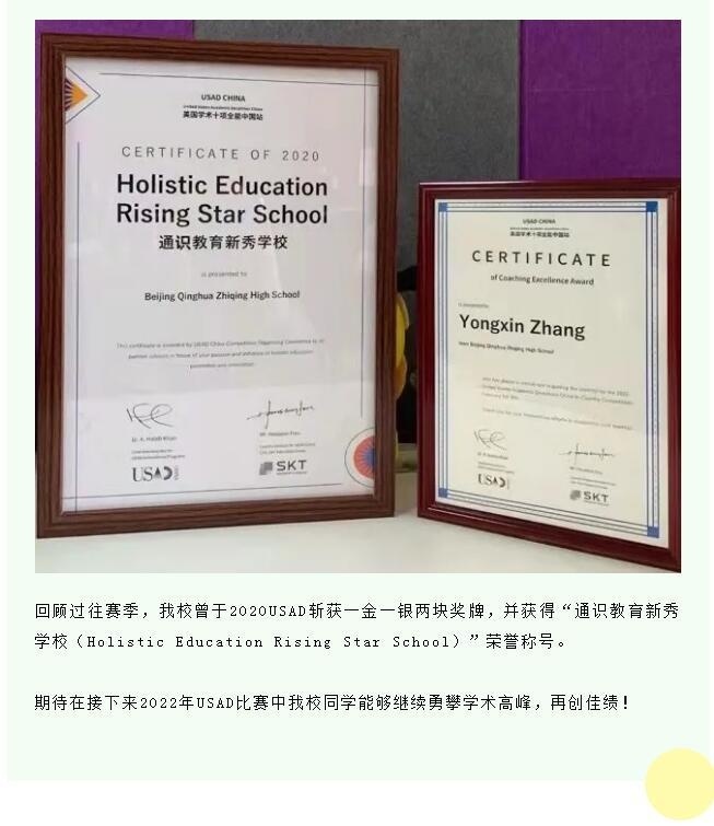 祝贺我校李希涵同学在2021年USAD比赛中凭借个人在经济学单科竞赛中的优异表现,获得北方赛区区域个人奖(Regional Individual Event Award in Economics)!