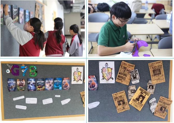 G7B班的同学们重新定义了《哈利波特》霍格沃兹魔法学校的校徽,并手绘出来;除此之外,做旧的小天狼星通缉令和《预言家日报》烘托了魔法主题。