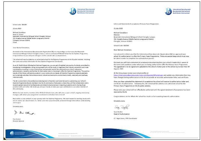 正式获得国际文凭组织IBDP、IBPYP项目授权