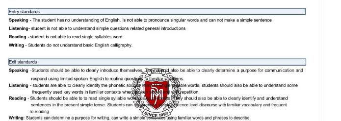 因此,针对于处于不同学习水平的学生,我们中外教团队研发制定了每个阶段的入学门槛、教学重点与本学年的期末目标。在整个学年里,我们会根据学生的测试水平,采取分层滚动式走班,使各个层的学生学有所得,学有所成。