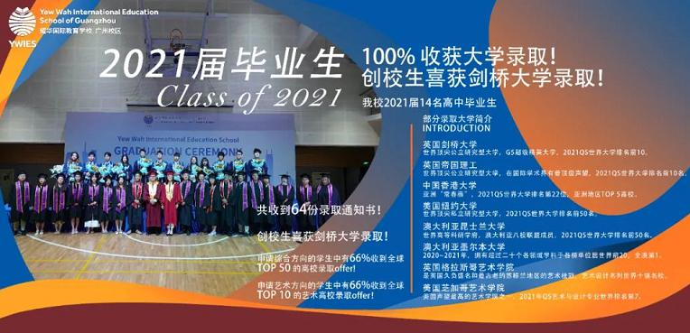 自2014年开学以来,我校的毕业生以优异的成绩和突出的表现获得众多世界名校的青睐。毕业生100%获得海外或中国香港等地的大学录取,其中,包括:英国方向的剑桥大学、帝国理工学校、伦敦大学学院、爱丁堡大学曼切斯特大学等英国院校,澳大利亚方向的悉尼大学、墨尔本大学、昆士兰大学等,美国方向的纽约大学、加州大学、伊利诺伊大学厄巴纳-香槟分校、普渡大学等,中国香港方向的香港大学、香港中文大学、香港科技大学,也有加州艺术学院、芝加哥艺术学院等艺术院校。