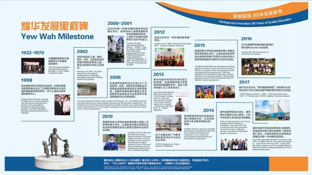 耀中耀华机构几十年来专注于国际教育的发展与中西融合,其开创性的针对中国学生而设计的耀华国际教育系列,在严格实施中国国家课程的基础之上,又引入了海外优质的教育资源,采用双语教育、小班授课的模式,培养学生发展成为学贯中西、具有国际视野的人才。