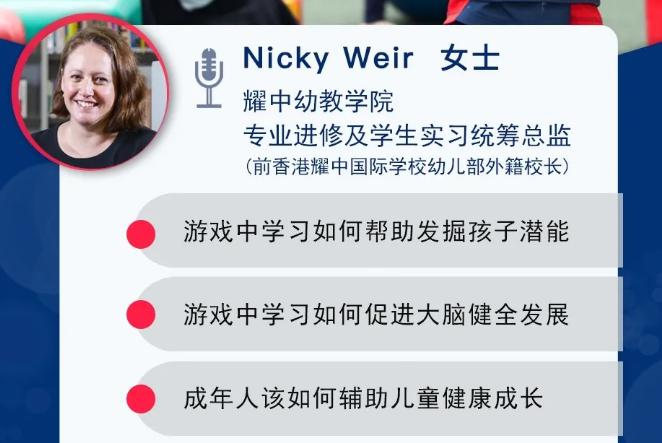 耀中幼教学院相信优质幼儿教育对促进社会发展至关重要——激发儿童的能力,使他们成为全球可持续性发展的积极贡献者。为了进一步探讨何谓优质幼儿教育,耀中幼教学院特意安排一系列在线公益讲座,让对幼儿教育有兴趣的未来教育家、在职幼儿教师及家长,一起通过ZOOM网上平台,听取幼教专家的意见,了解实践优质幼儿教育过程中的挑战及机遇,分享经验与心得,引领我们支持下一代的成长。