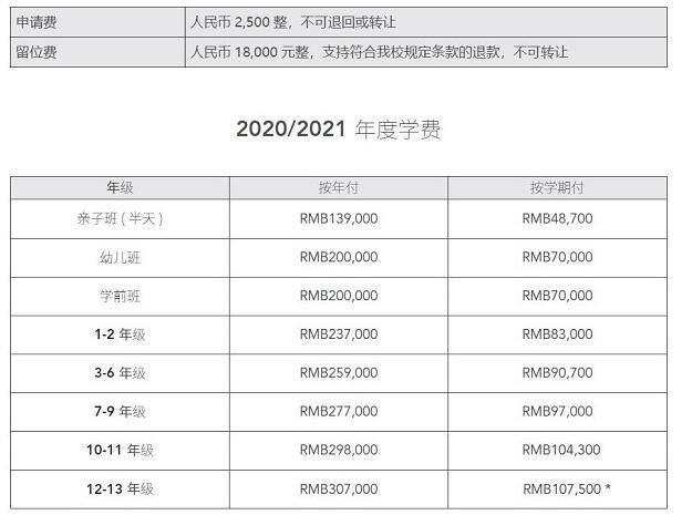 北京德威国际学校2020/2021学年学费如图所示,同往年一样