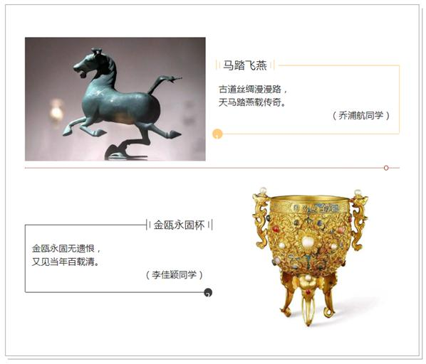 “分则天下太平,合则风起云涌”,是陕西省历史博物馆镇馆之宝——杜虎符的著名广告语,学生们进行了模拟创作,其中不乏满分佳作。