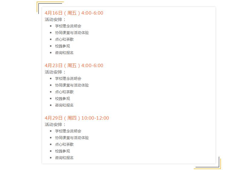 曦城协同国际学校即将在本校区举办两场开放日活动,诚挚邀请您深入了解学校,一同探讨纯正的美式教育,我们将按照报名顺序与您确认,:.