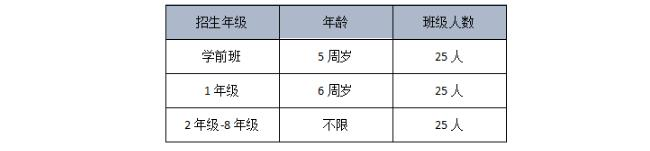 从学前班开始,学校开始提供全外教英文授课,全浸泡式英文课堂,采用美国共同州立核心课程标准(CCSS)。每个班都配备一名幼儿部主班老师,一名助教主班老师。主班老师负责教授大部分的课程,少数专业课程如音乐、艺术、体育等,则由专业的学科老师负责教授。