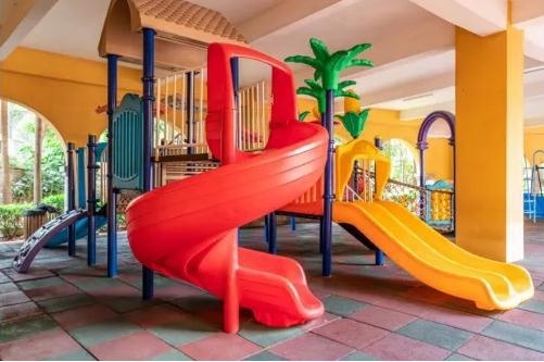 主体建筑内部设有一块风雨操场,可供学生们在课间休息时玩耍。风雨操场的设施非常齐全,有儿童滑梯、兵乓球台、跷跷板等运动用具,一应俱全。