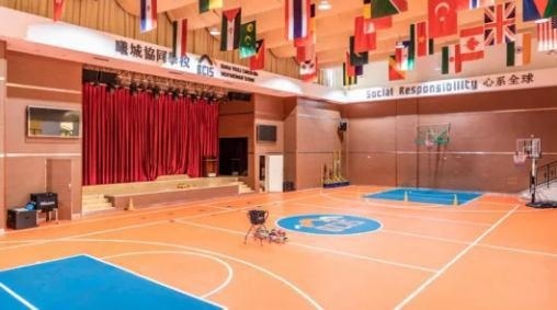 学校还有一个美式风格的室内体育馆,它集多种功能于一体,既可以用作室内运动场,又可以作为全校集会的会议室,还可以作为学生汇演、开学典礼、毕业典礼等大型活动的礼堂。
