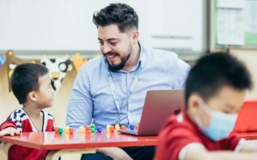 从学前班开始,学校开始提供全外教英文授课,全浸泡式英文课堂,采用美国共同州立核心课程标准(CCSS)。每个班都配备一名幼儿部主班老师,一名助教主班老师。主班老师负责教授大部分的课程,少数专业课程如音乐、艺术、体育等,则由专业的学科老师负责教授。