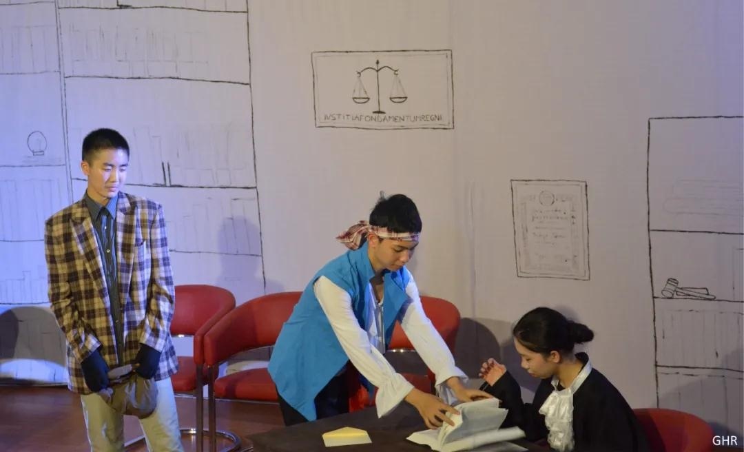剧中,孙艺涵同学饰演法官,王梓潇同学饰演法官助理,席越同学饰演穷人,刘禹萌同学饰演虚荣的女人,李佳蕊同学饰演富有的市民。
