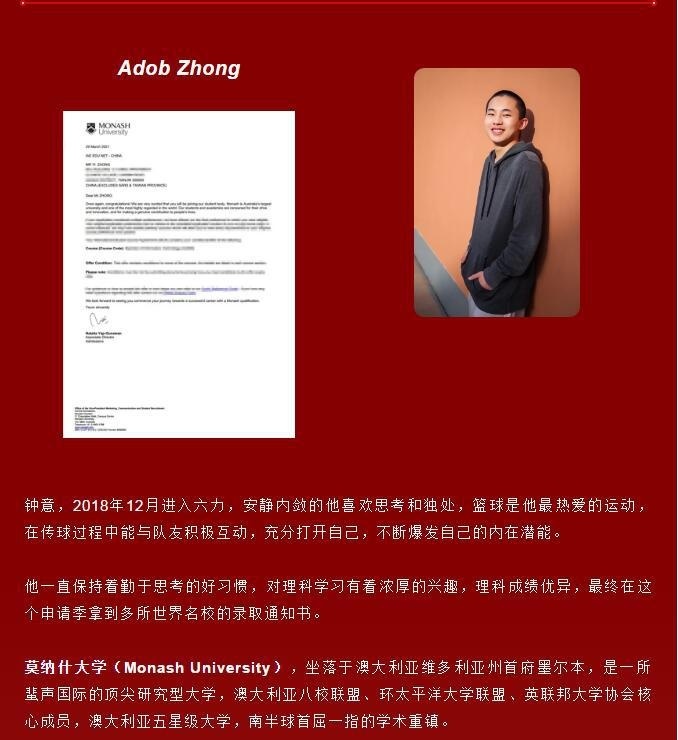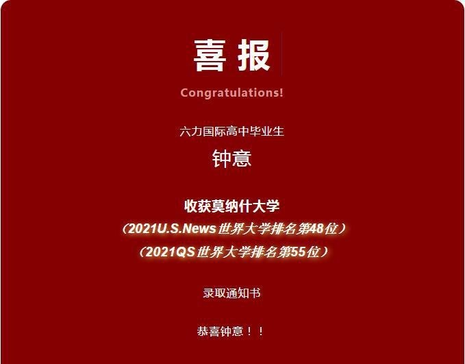六力国际高中钟意收获世界名校澳洲莫纳什大学录取通知书!