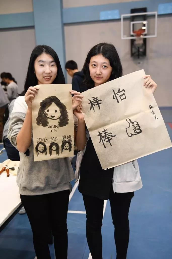 《历代名画记》中谈论文字、图画的由来时说:“是时也,书、画同体而未分,象制肇创而犹略,无以传其意,故有书;无以见其形,故有画”。所以,当漫步,穿梭于赛场之内时,您会不时地发现,很多学生的书法大作中不仅仅包含着形态各异,个性鲜明的中西文字,还巧妙地插入了不同“门派”的绘画元素。苍劲有力的松竹,憨态可掬的动物,还有无数动漫中的卡通角色。单一的黑色笔调全然无法限制住场上参赛者想象与创意的脚步。就像中学部中文组组长陈老师所说的,中国书法与书画艺术并非拘泥于书写与作画的形式,它其实更像一种思维方式与人生态度。人们通过这种方式,可在信息爆炸与快节奏的时代,找到一块静谧的空间,放松自我,潜心思考。