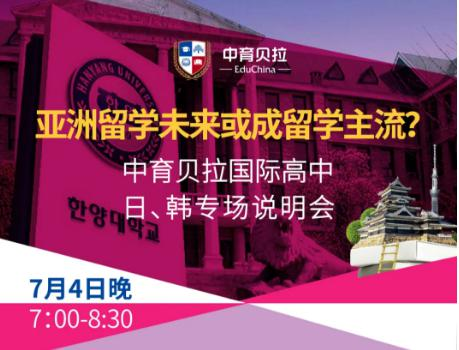 中育贝拉国际高中将举办:日、韩专场说明会,为大家做出详尽的讲解与介绍,让我们从更多角度了解日本与韩国!