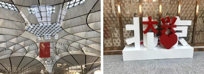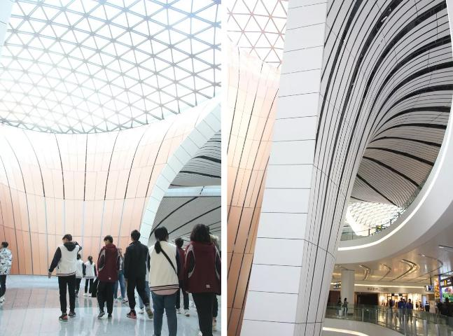 这次我们的研学活动是在北京大兴区新开发的机场,来的时候,地面很整洁,没有一丝凌乱。机场里面他们运用优美的诗句点缀,让整个机场都赋予了中国的文化,特别是蒲公英,真是美极了!为了大家方便出国,把海关建立在了一层,很为大家的便利着想,一层和二层是食品区,那里都有各种各样的食物,在最顶层是全聚德,你可以在机场体验到老北京的特色烤鸭,希望大家都有机来这里品尝。