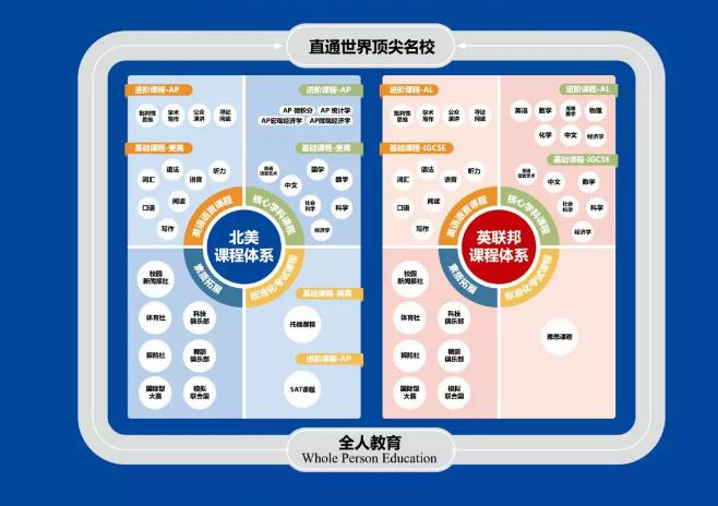 (美国方向为美高+AP+托福+SAT,英联邦方向为A-Level+雅思)