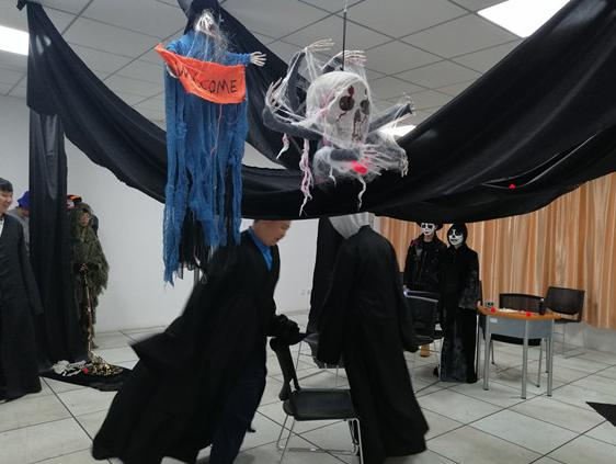 言归正传,昨天中育贝拉北京校区圆满举办了一年一度的万圣节晚会,在一周内同学们精心准备策划下,晚会活动齐聚北京校区和FESCO艺术高中校区及老师们,通过完成一些设定的项目完成闯关。里面的内容很丰富,精心布置的场景趣味十足,同学和老师都玩的不亦乐乎。